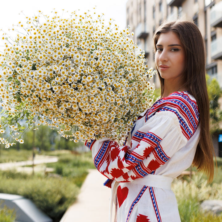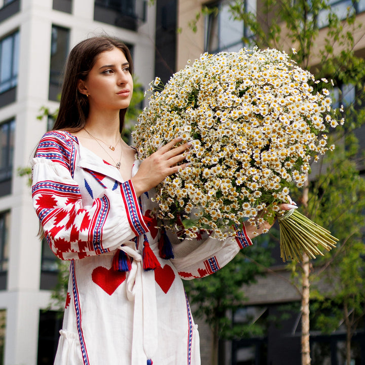 Символіка: танасетум (ромашки) уособлює молодість, щирість і чистоту почуттів, даруючи теплі й світлі емоції.