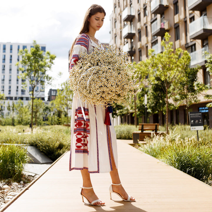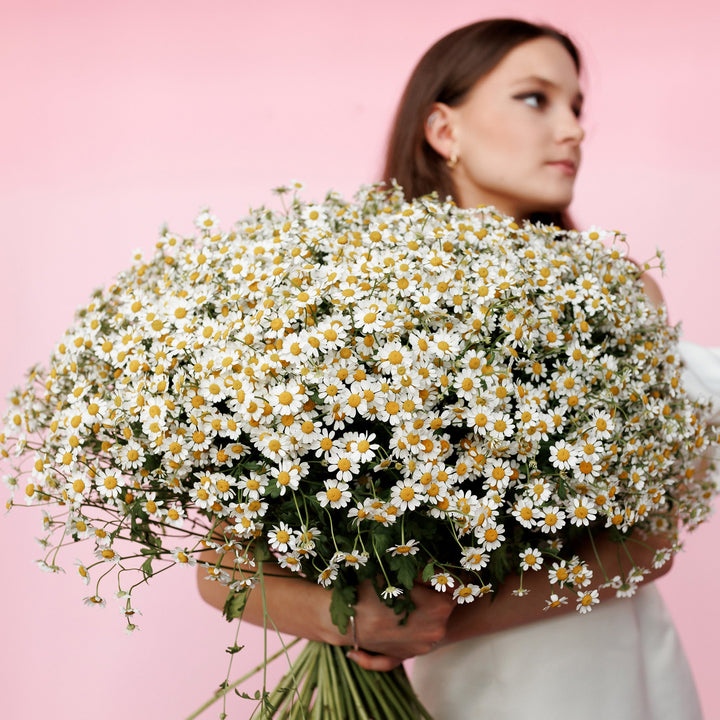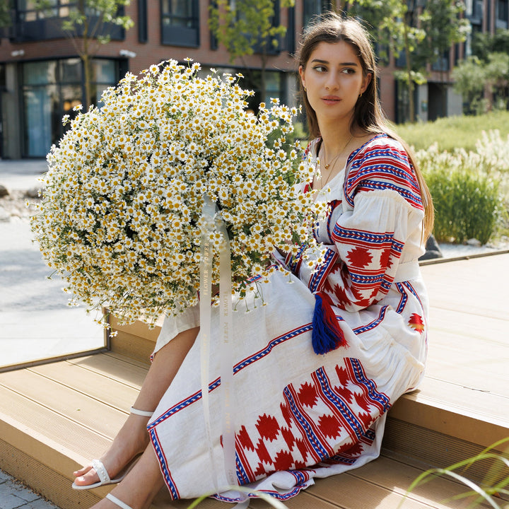 Букет Мрійник — це легкість та чиста гармонія у флористичному мистецтві. Свіжий танасетум із ніжними білими пелюстками й сонячними жовтими серединками виглядає напрочуд витончено, попри свій «польовий» характер. Цей букет наче створений для того, щоб дарувати легкість, юність та мрійливий настрій.