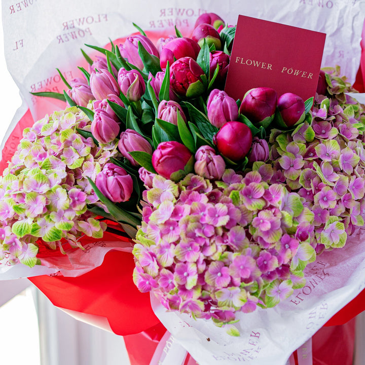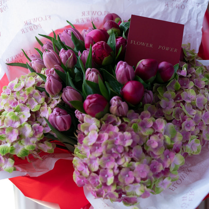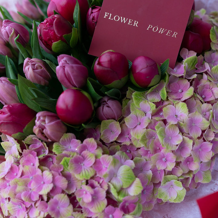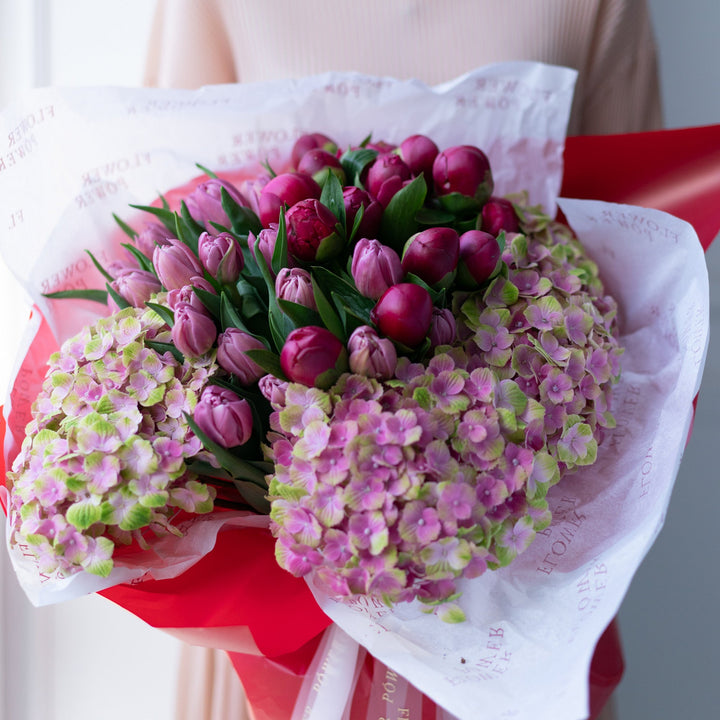 Букет з тюльпанами та гортензіями Відвертість