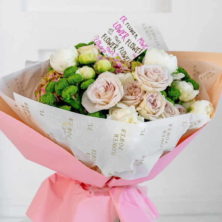 Попри «сильну» назву, цей букет зовсім не брутальний. Він втілює контраст насиченої живої зелені й ніжних пастельних квітів. Справжній вибір для справжнього мачо, який прагне вразити кохану та підкорити її серце в одну мить.