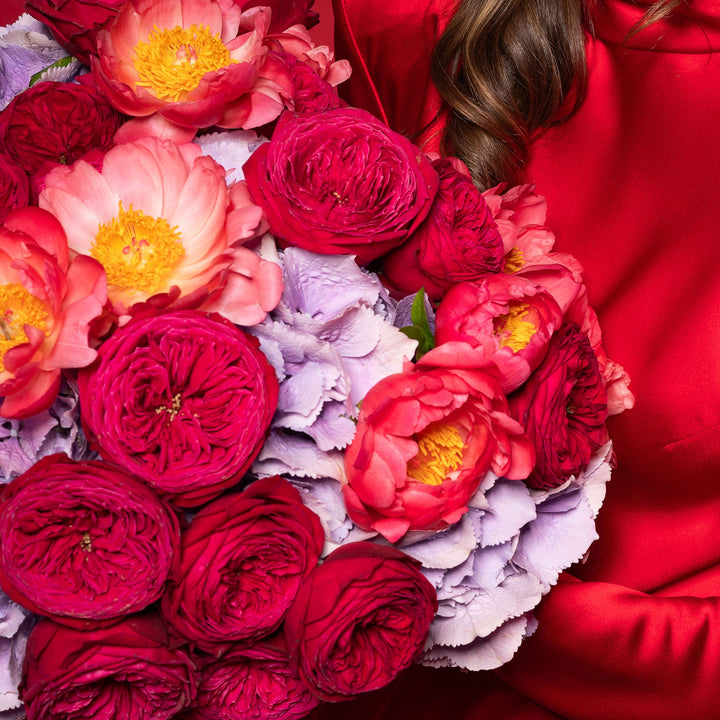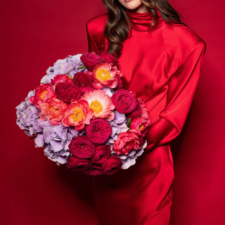 Найчистіша пристрасть і відданість утілені в букеті, який ми назвали «Марія Тереза». Подібну назву має українська пісня для Євробачення, що стала справжнім світовим феноменом. Такий самий ефект ви відчуєте, коли поглянете на нашу композицію «Марія Тереза» з її насиченими рожевими та кораловими відтінками, підкресленими ніжним ліловим акцентом квітучої гортензії. Букет складається з численних великих півоній, садових троянд і гортензій. Пропонуємо придбати букет «Марія Тереза» як символ ваших найяскравіших почуттів і відданості. Він вражає розмірами, а ціна на композицію «Марія Тереза» приємно дивує своєю доступністю. Просто подаруйте його близьким, щоб виразити найглибше захоплення та радість.