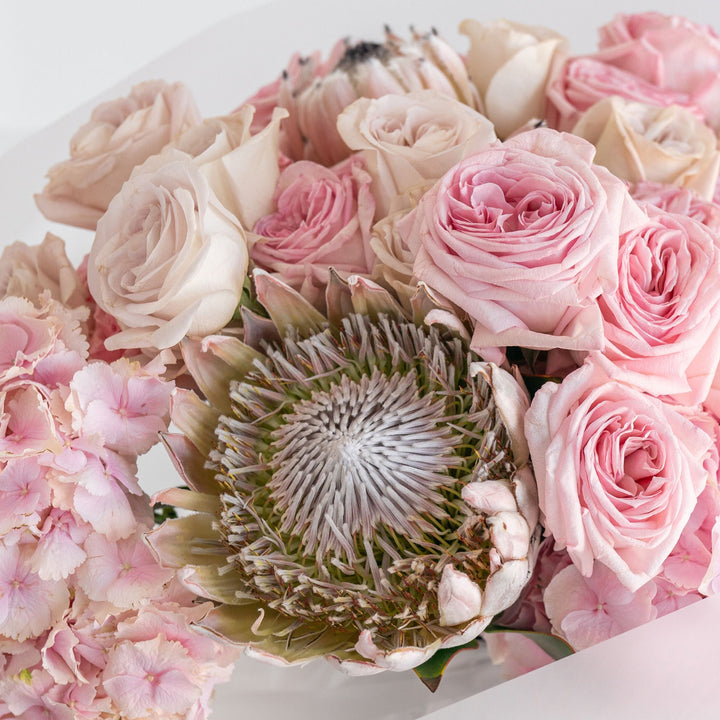 Це справжня солодкість, яку можуть подарувати лише хмарки зефіру. Істинний «зефірний» ефект створює наш букет «Маршмеллоу», який ви можете замовити в нашому інтернет-магазині квітів. Це по-справжньому делюкс-композиція з ніжних садових троянд, світло-рожевих півоній і суцвіть гортензії. Серцем композиції є рідкісна квітка протеї, що додає пікантної ноти вічній солодкавості цього флористичного дизайну.