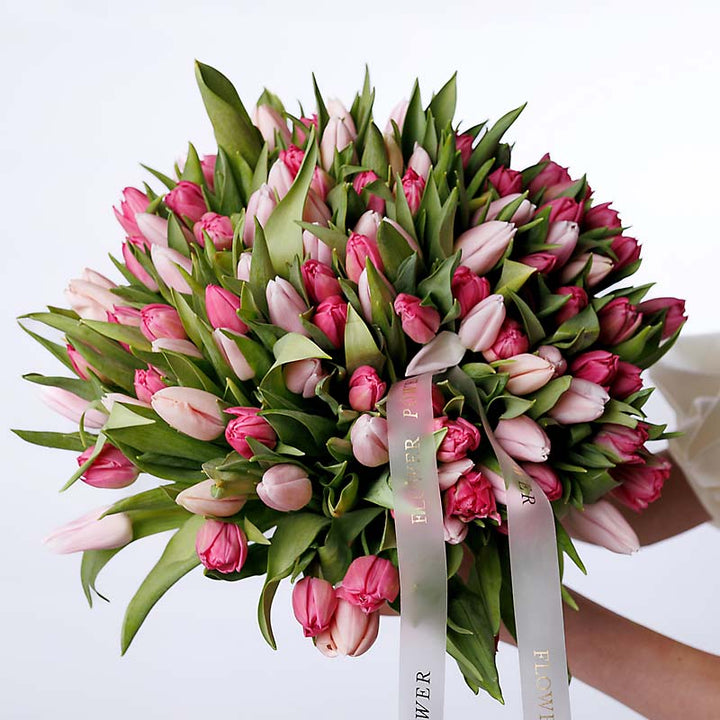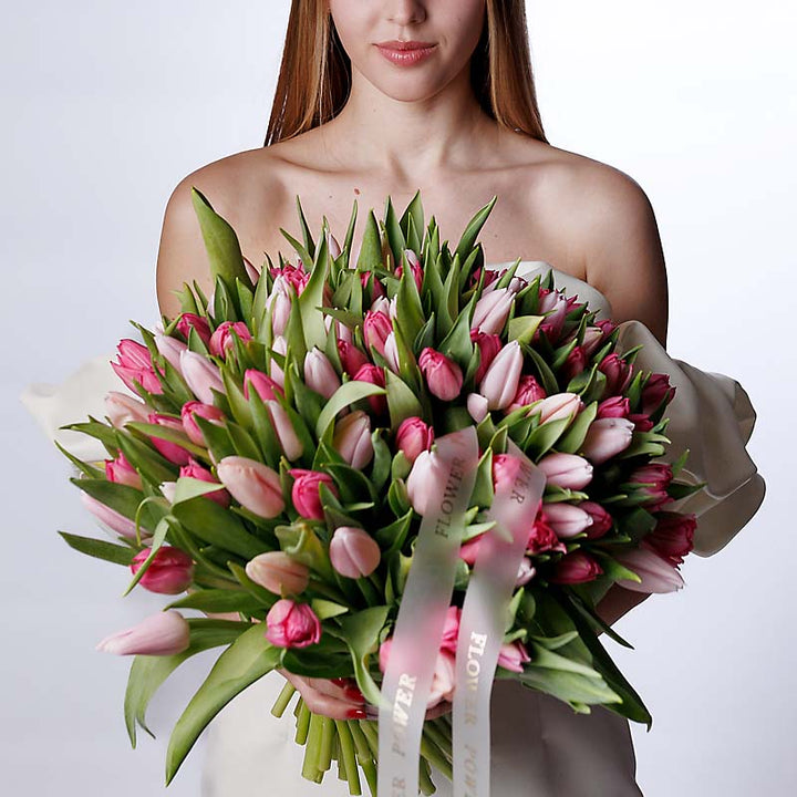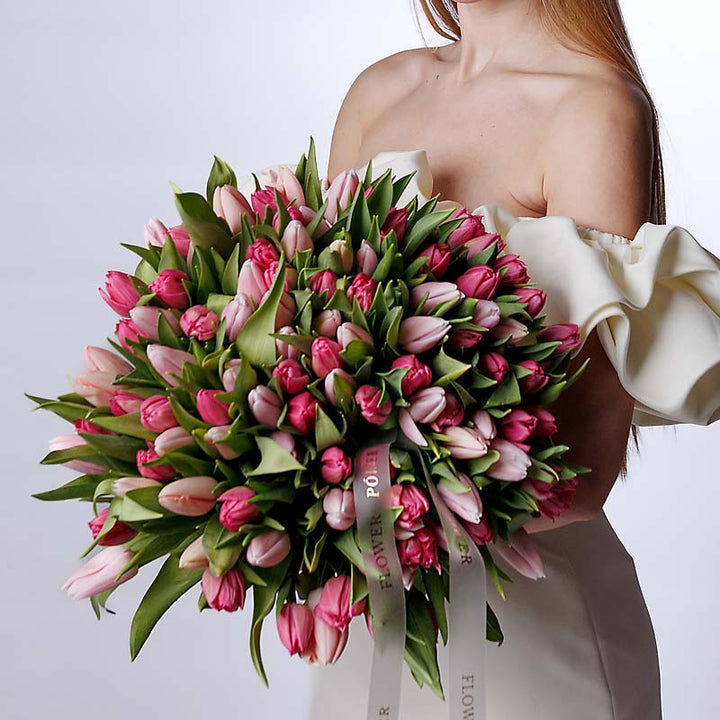 Букет "Рожева Любов" — це ніжна та стильна композиція з рожевих тюльпанів. Кожна квітка підібрана з особливою увагою до якості, щоб створити гармонійний букет у романтичних відтінках. Квіти символізують щирість почуттів, тюльпани додають легкості та весняного настрою.
