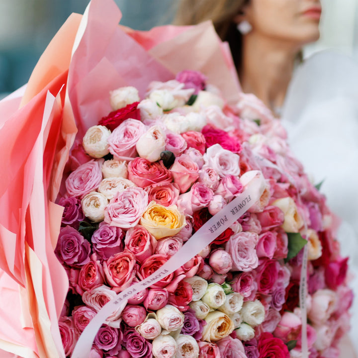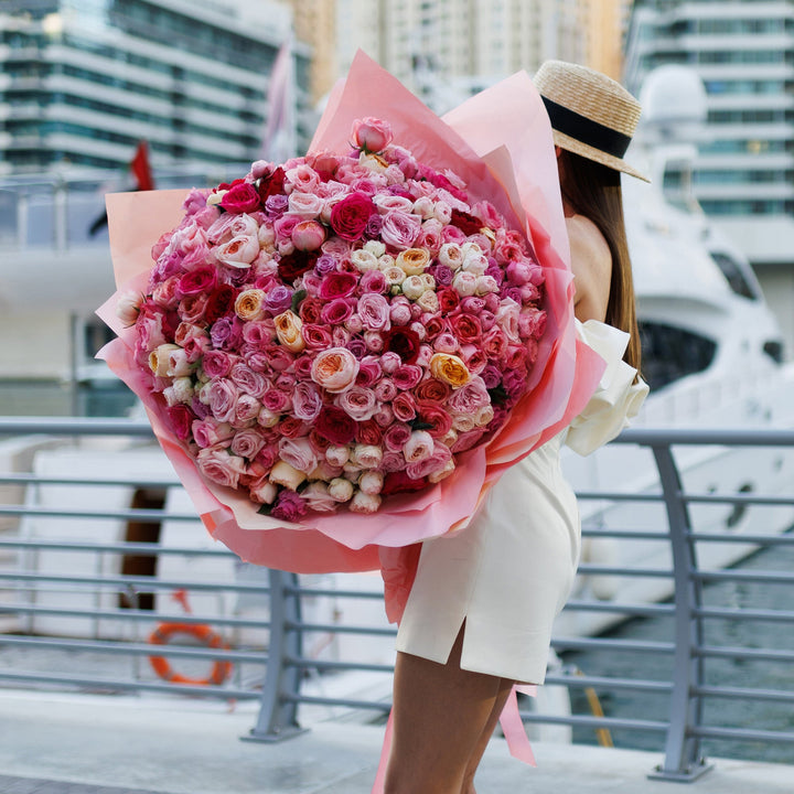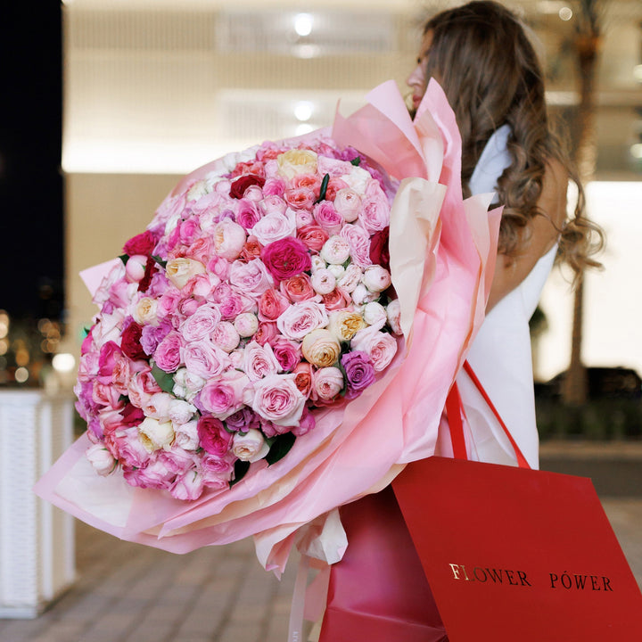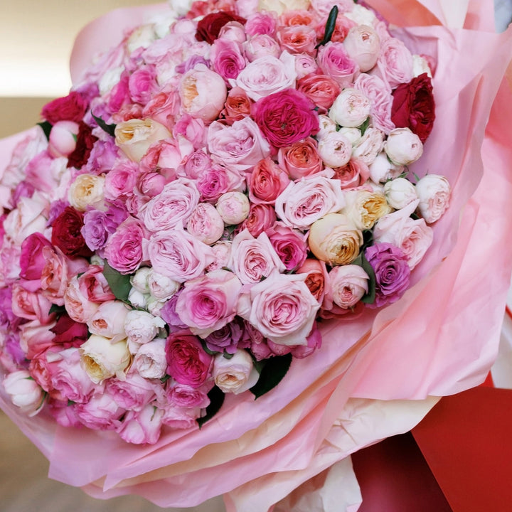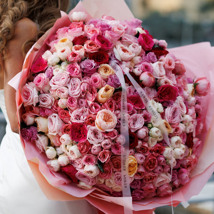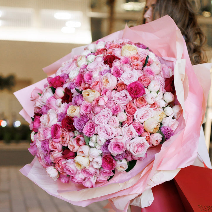 Попрощайтеся з літньою меланхолією й відкрийте серце літньому щастю! Це чудове поєднання троянд, спрей-троянд і садових троянд у ніжно-пастельних рожевих відтінках, що закохують із першого погляду. Величезний букет із десятків дрібних троянд — відмінний вибір для першого побачення та найкращий...