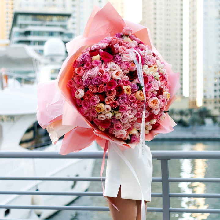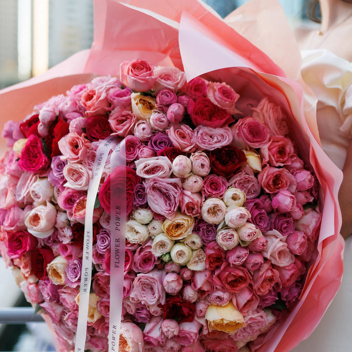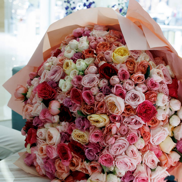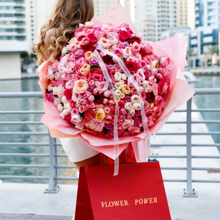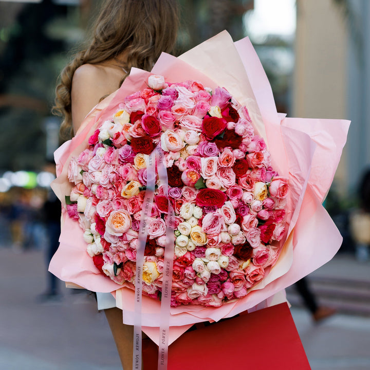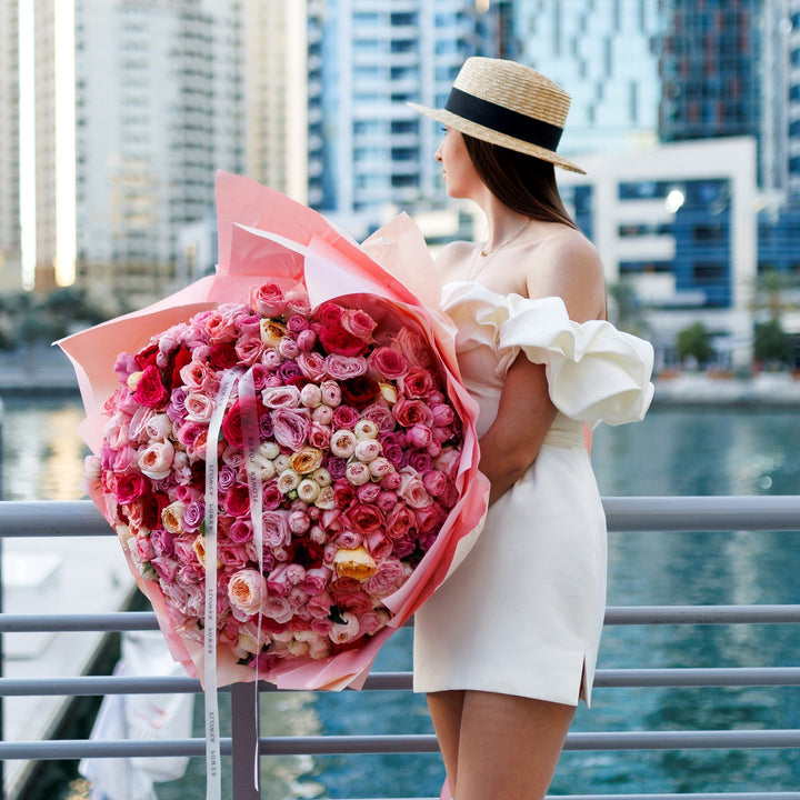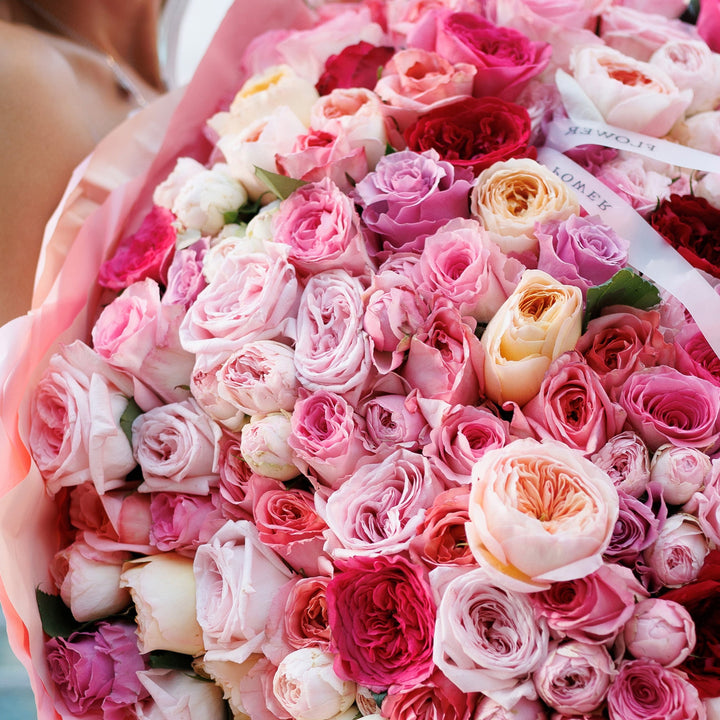 Попрощайтеся з літньою меланхолією й відкрийте серце літньому щастю! Це чудове поєднання троянд, спрей-троянд і садових троянд у ніжно-пастельних рожевих відтінках, що закохують із першого погляду. Величезний букет із десятків дрібних троянд — відмінний вибір для першого побачення та найкращий...
