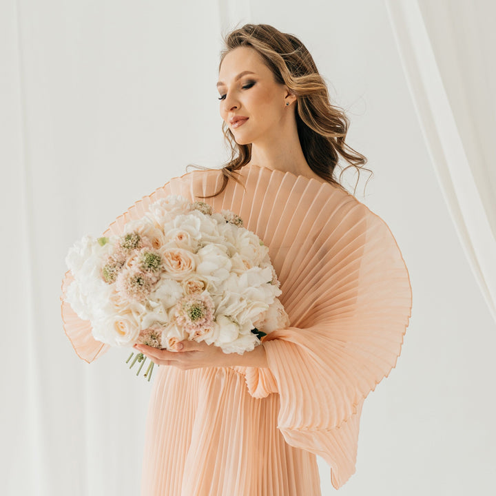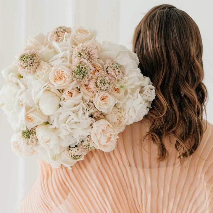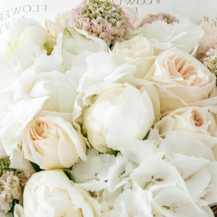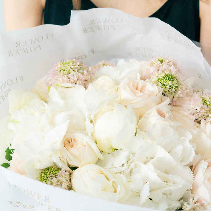 Бути ніжним — це прекрасно. Особливо, коли ти — квітка. Саме тому ми створили цей флористичний дизайн, що повністю передає найвищий ступінь ніжності. Знайомтеся: букет «Ніжність», який складається з чисто-білих гортензій, ексклюзивних білих півоній, незвичних бутонів скабіози та пастельних садових троянд.